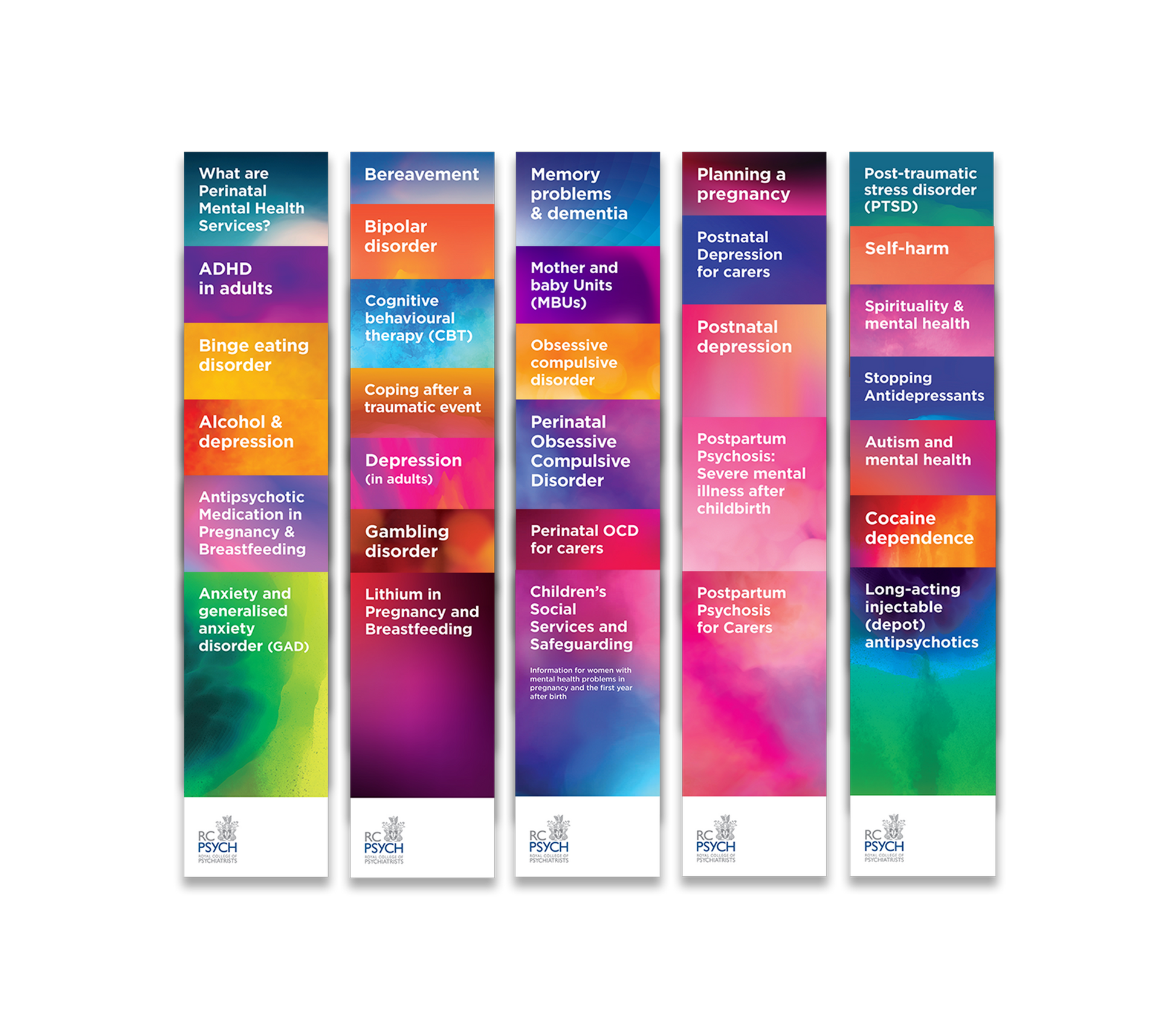 Please note: The perinatal leaflets listed below are shown for reference but are not included in this bundle, which focuses solely on adult (non‑perinatal) mental health topics.